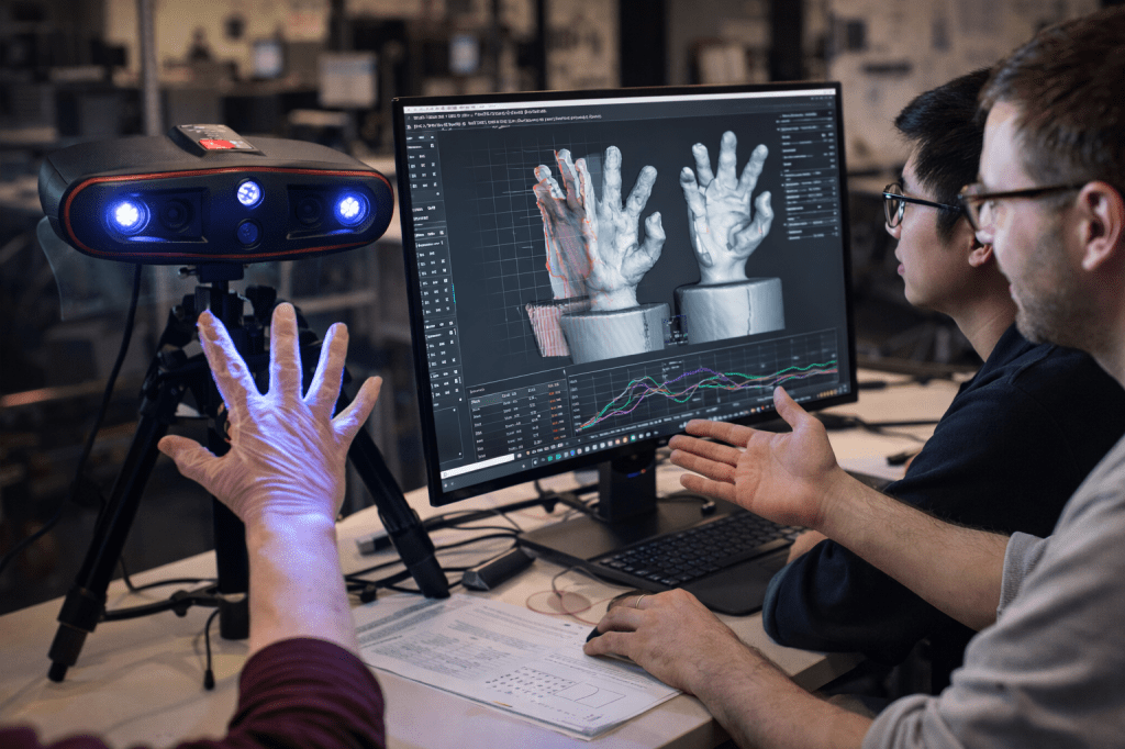 이러한 문제를 해결하기 위한 방향으로 최근에는 고해상도 3D 스캔과 동작 기반 4D 스캔을 결합한 접근이 확대되고 있습니다. 시간 축을 포함한 4D 스캔은 손 제스처를 연속적으로 포착해 관절 움직임과 체표 변형을 함께 기록할 수 있으며, 관절축 자동 추출 알고리즘이나 연부조직 변형 시뮬레이션, AI 기반 보정 기술과 결합될수록 데이터의 활용도는 더욱 높아집니다. 메타와 애플이 발표한 머신러닝 기반 핸드트래킹 캘리브레이션 기술 역시 이러한 흐름을 보여주는 사례이며, 로보틱스 분야에서도 사람 손가락의 자유도(DoF)를 기반으로 로봇 핸드의 동작을 정밀하게 재현하기 위한 연구가 활발히 진행되고 있습니다. 결국 VR 인터랙션의 완성도를 높이기 위해서는 정적 형상을 넘어 동작과 변형을 포함한 정밀 관절 데이터 기반의 손 모델링이 핵심적인 역할을 하게 됩니다.
