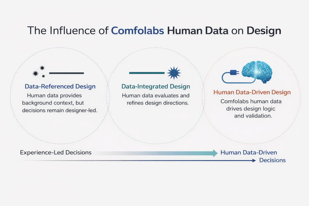 패션의 핏 개선, 모빌리티 UX 최적화, 가구·공간 설계 고도화, 디지털 헬스케어 서비스 설계, 웨어러블 디바이스 위치 최적화까지 — 컴포랩스는 디자인-제조-서비스 전 과정에 정밀성과 과학적 근거를 더합니다. 우리의 목표는 “사람에게 딱 맞는 설계”가 모든 산업의 기본이 되도록 하는 것입니다.