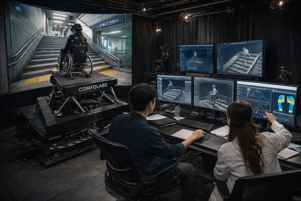 컴포랩스는 3D 인체 스캔, 동적 데이터 분석, 체형군 모델링, 디지털 트윈 기반 시뮬레이션을 통해 이동약자 데이터를 설계 현장에 연결하는 구조를 구축하고 있다. 휠체어 사용자 데이터를 특수 영역으로 분리하지 않고, 설계의 중심 데이터로 통합하는 접근을 제안한다. 이는 유니버설 디자인의 확장이 아니라 설계 기준의 재정의다. 제품과 공간, 서비스가 사용자에게 맞춰지는 것이 아니라, 사용자 데이터가 설계의 출발점이 되는 구조. 그 전환을 실현하는 것이 휴먼데이터 기반 설계이며, 컴포랩스는 그 실행을 함께하는 파트너다.