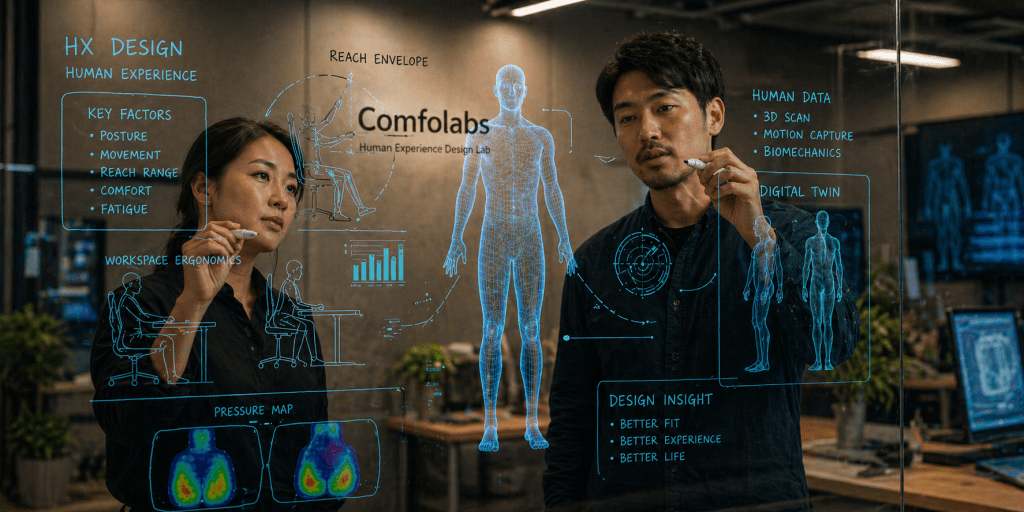HX는 사용자의 행동만이 아니라 신체 구조, 움직임, 자세, 피로도, 시야, 도달 범위, 생활 습관까지 포함합니다. 즉, 사람이 제품을 어떻게 사용하는가가 아니라, 사람이라는 존재 자체를 어떻게 설계에 연결할 것인가를 고민하는 것입니다. 자동차 시트, XR 디바이스, 의료기기, 사무용 가구, 웨어러블 장비까지 이제는 평균적인 사용자보다 실제 사람의 다양성과 움직임을 반영하는 설계가 훨씬 중요해지고 있습니다. 이러한 변화는 단순한 트렌드가 아니라 산업 전반의 새로운 기준이 되고 있으며, 다양한 산업군에서 인체치수, 동작, 3D 형상, 체압, 도달범위 등 정밀한 휴먼데이터 수요가 빠르게 확대되고 있다는 점에서도 이를 확인할 수 있습니다.